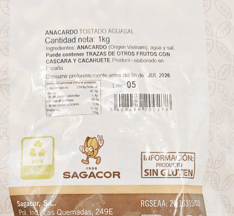 Los anacardos destacan por su contenido en proteínas de alta calidad, por ser muy energéticos y para aportar ácidos grasos cardiosaludables, muy ricos en folato y hierro. Conservar en lugar fresco y seco / Proteger de la luz solar.