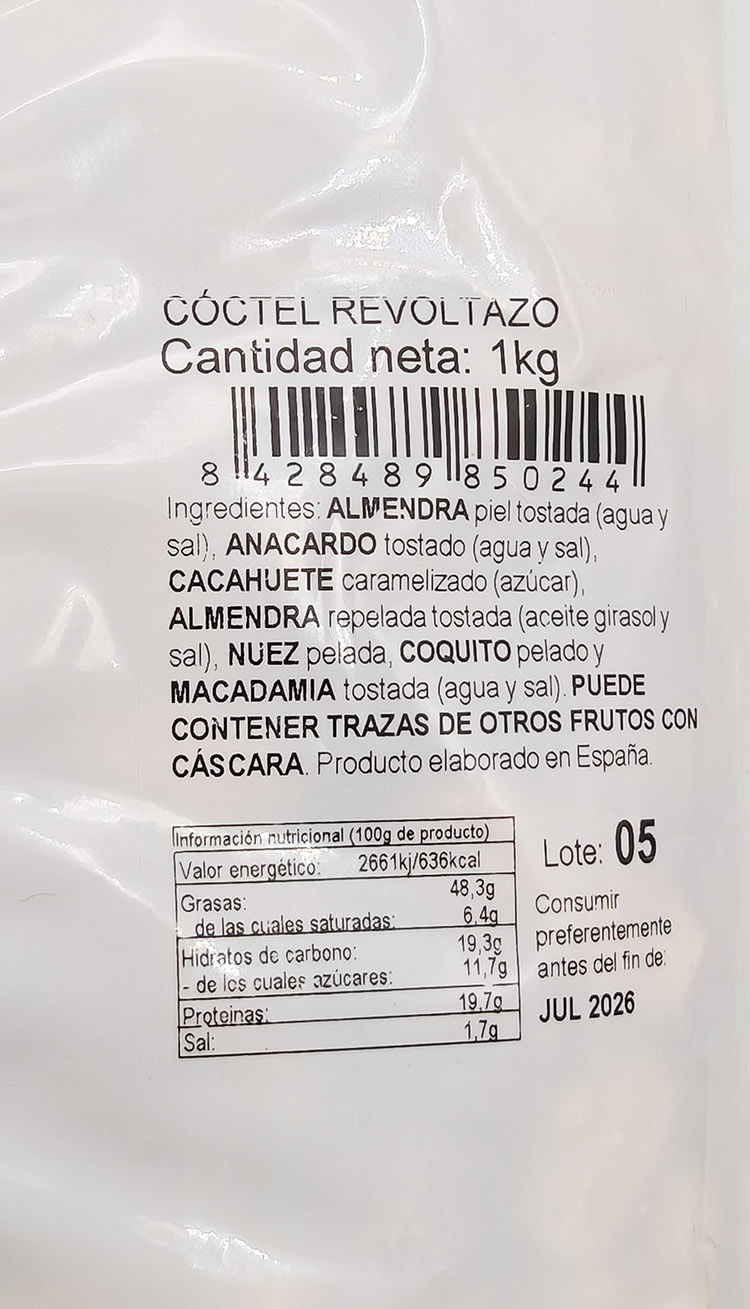 Disfruta de un cóctel premium donde cada ingrediente aporta carácter: el contraste entre cacahuete tostado y caramelizado, la suavidad de las pasas, el toque noble de la nuez, el garbanzo tostado y la almendra crujiente. Un equilibrio perfecto entre dulce y salado, pensado para paladares que buscan calidad y variedad en cada puñado. Conservar en lugar fresco y seco / Proteger de la luz solar.
